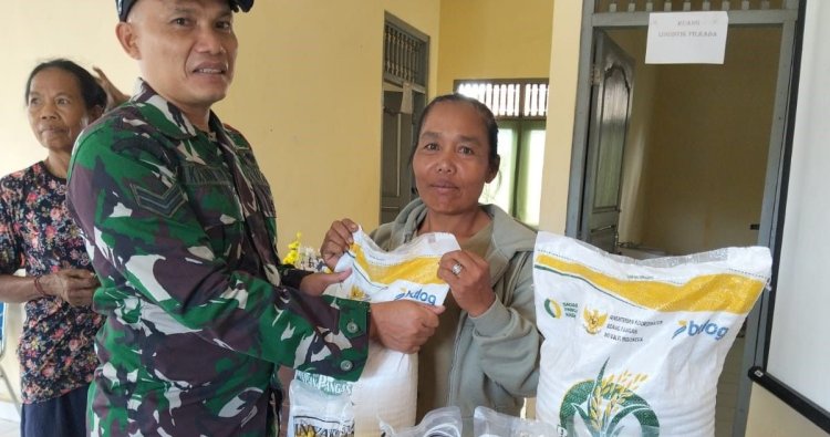 Sebelum disalurkan, Sertu Ketut bersama pihak Perangkat Desa melakukan pengecekan ulang daftar penerima bantuan pangan yang ditujukan untuk warga kurang mampu tersebut. (*)