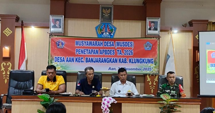 Klungkung, - Babinsa Koramil Banjarangkan menghadiri kegiatan Musyawarah Desa (Musdes) yang membahas Anggaran Pendapatan dan Belanja Desa (APBDes) Tahun Anggaran 2026 di Desa Aan, Kecamatan Banjarangkan, Kabupaten Klungkung, pada Sabtu (03/01/2026).