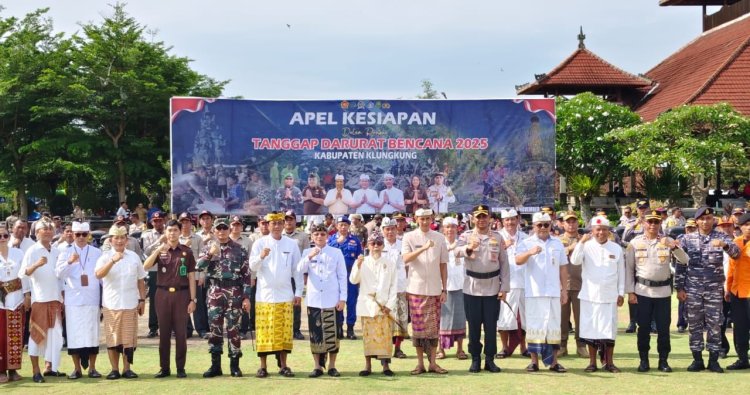 Klungkung, - Dandim 1610/Klungkung, Letkol Kav Sidik Pramono menghadiri Apel Kesiapan dalam rangka Tanggap Darurat Bencana yang digelar di Mapolres Klungkung pada Rabu (05/11/2025).