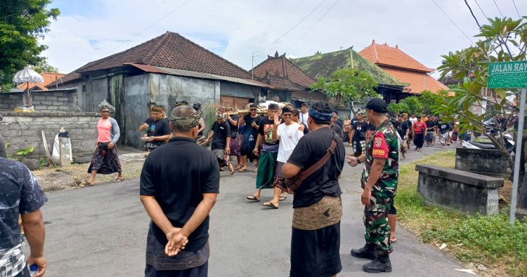 Para Babinsa tampak bersinergi dengan aparat desa, pecalang, serta unsur keamanan lainnya dalam mengawal jalannya prosesi, mulai dari persiapan hingga pelaksanaan puncak acara.