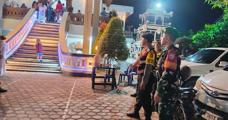 Klungkung, - Dandim 1610/Klungkung mengerahkan personelnya untuk mengawal dan mengamankan pelaksanaan ibadah Malam Natal yang berlangsung di sejumlah gereja di Kabupaten Klungkung, Selasa (24/12/2025) malam.