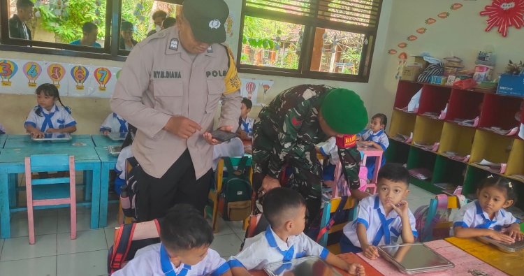 Klungkung, - Babinsa Koramil Klungkung, Koptu Kadek Agus melakukan pendampingan pendistribusian makan bergizi gratis kepada para siswa di TK Negeri Kamasan, Kecamatan Klungkung, Kabupaten Klungkung pada Senin (05/01/2026).