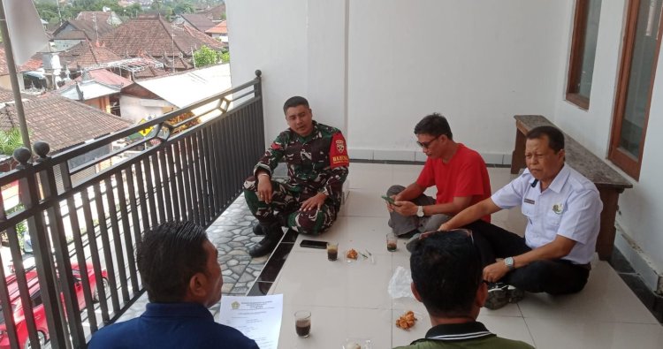 Klungkung, - Babinsa Koramil Klungkung, Koptu Kadek Agus, melaksanakan kegiatan komunikasi sosial atau komsos bersama perangkat Desa Kamasan, Kecamatan Klungkung, Kabupaten Klungkung, pada Jumat (06/02/2026).