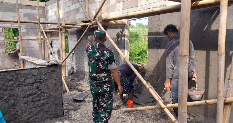 Klungkung, - Babinsa Koramil Nusa Penida, Koptu Kuswara, melakukan pendampingan berlangsungnya pembangunan Dapur Sehat yang berlokasi di Desa Lembongan, Kecamatan Nusa Penida, Kabupaten Klungkung, pada Selasa (13/01/2026).