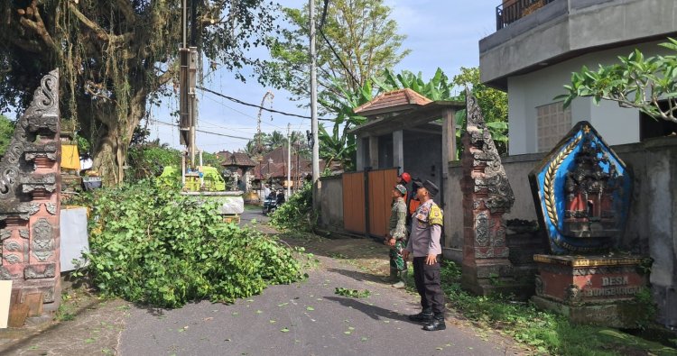 Klungkung, - Guna mengantisipasi terjadinya pohon tumbang yang dapat membahayakan keselamatan warga, Koramil Banjarangkan bersama Badan Penanggulangan Bencana Daerah (BPBD) melakukan pemangkasan pohon di Desa Bungbungan, Kecamatan Banjarangkan, pada Rabu (17/12/2025).
