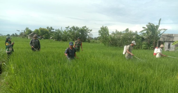 Klungkung, - Dalam rangka mendukung program Pemerintah dalam mewujudkan ketahanan pangan nasional, Babinsa Koramil Banjarangkan, Serka Wayan Rata, terus melakukan pendampingan intensif kepada para petani di wilayah teritorialnya.