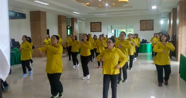 Klungkung, - Dalam upaya menjaga kesehatan sekaligus mempererat kebersamaan, Persit Kartika Chandra Kirana Kodim Klungkung menggelar kegiatan senam bersama di Aula Makodim Klungkung, Selasa (21/04/2026).
