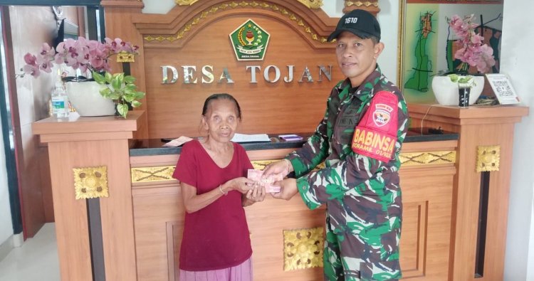 Klungkung, - Babinsa Koramil Klungkung, Serka Ketut Sudarma turut mendampingi kegiatan penyaluran Bantuan Langsung Tunai Dana Desa (BLT DD) kepada warga kurang mampu di Desa Tojan, Kecamatan Klungkung, Kabupaten Klungkung pada Sabtu (06/12/2025).