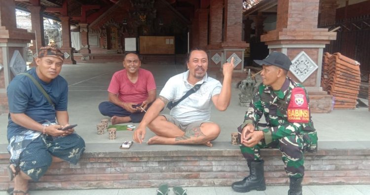 Klungkung, - Dalam rangka mempererat hubungan antara TNI dan masyarakat, Babinsa Koramil Klungkung, Serka Ketut Sudarma, melaksanakan komsos bersama warga di Balai Banjar Jelantik Mamoran, Desa Akah, Kecamatan Klungkung, pada Rabu (22/10/2025).