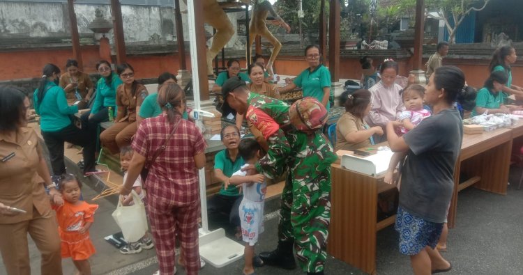 Klungkung, - Babinsa Koramil Klungkung, Serka Nyoman Suartana, melakukan pendampingan kegiatan posyandu balita di Kelurahan Semarapura Kangin sebagai bentuk kepedulian TNI terhadap kesehatan ibu dan anak, khususnya balita, di wilayah teritorialnya pada Selasa (10/02/2026).