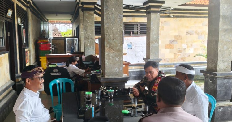 Klungkung, - Babinsa Koramil Banjarangkan, Sertu Putu Agustana menggelar komsos atau komunikasi sosial bersama perangkat Desa Tihingan, Kecamatan Banjarangkan, Kabupaten Klungkung, sebagai upaya mempererat hubungan kerja sama dan sinergitas antara TNI dengan aparatur desa.